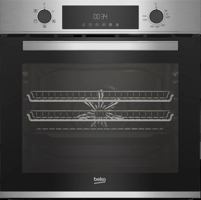 Youll find new design elements on this Beko single oven, including a revamped display, knob, handle and d?cor. As a built in model finished in stainless steel, it will be a stylish and streamlined addition to your kitchen.