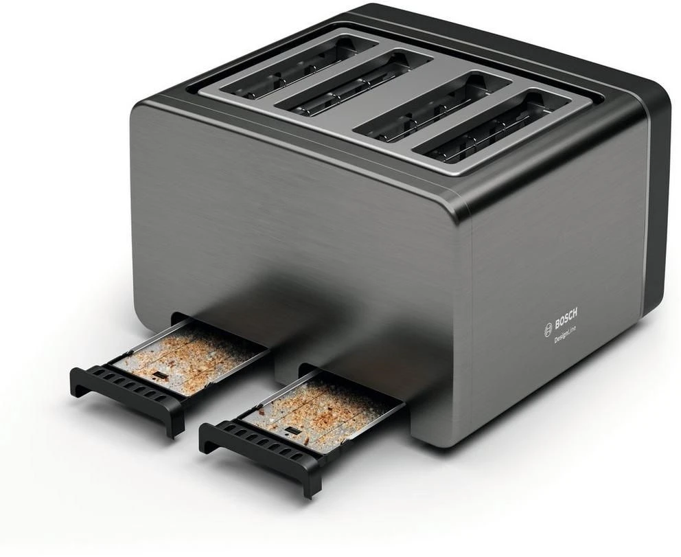 Bosch has designed this four slice toaster with ease of use in mind. For households where safety comes first, the Automatic Shut off will keep minds at rest – this feature stops the toaster without prompt if a doughy muffin or spongy crumpet gets stuck in one of the slots. As a result, you won’t need to worry about snacks burning, and you can go about your chores stress-free.