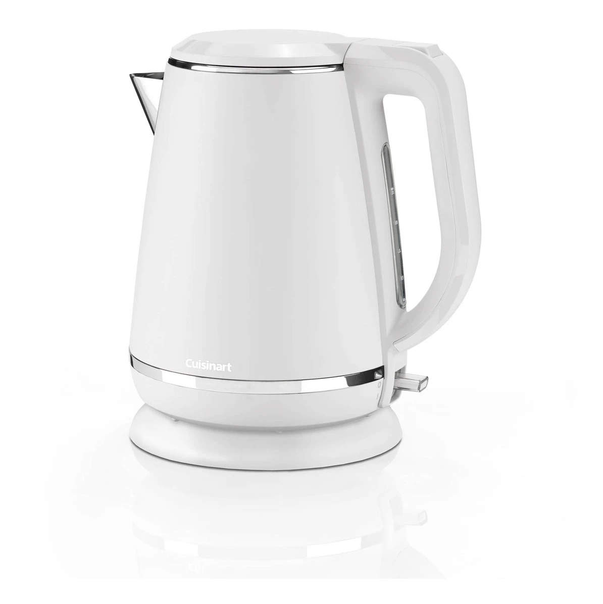 - Contemporary jug kettle, in a warm white, matte finish with polished details