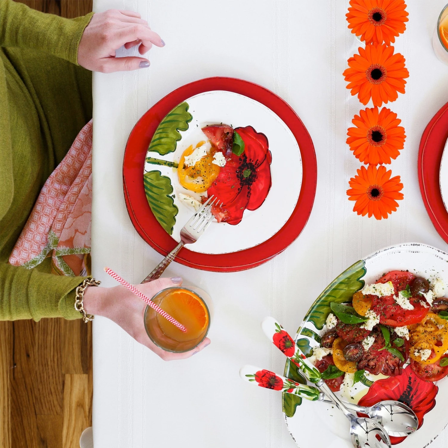 The perfect plate for salad, dessert, or appetizers, the Lastra Poppy Salad Plate brings the warmth of Tuscany to your table with rustic sophistication. An overlapping wooden mold, used for centuries to form cheeses throughout Italy, inspired this collection.