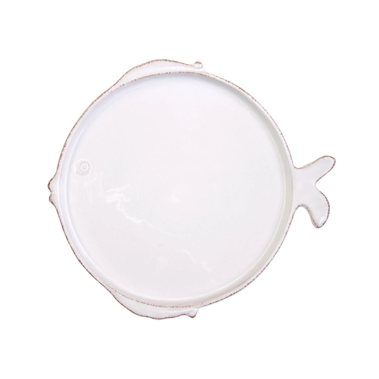 The Lastra Fish Salad Plate features clean, simple lines, and the charming details of a little fish.