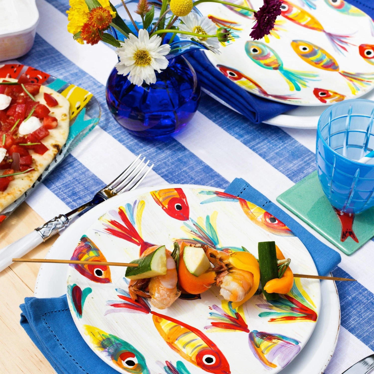 A traditional school of fish was the original inspiration for the Pesci Colorati Salad Plate. Our maestro artisans put their signature spin on the design with layers of color in handpainted detail to add variety and texture.